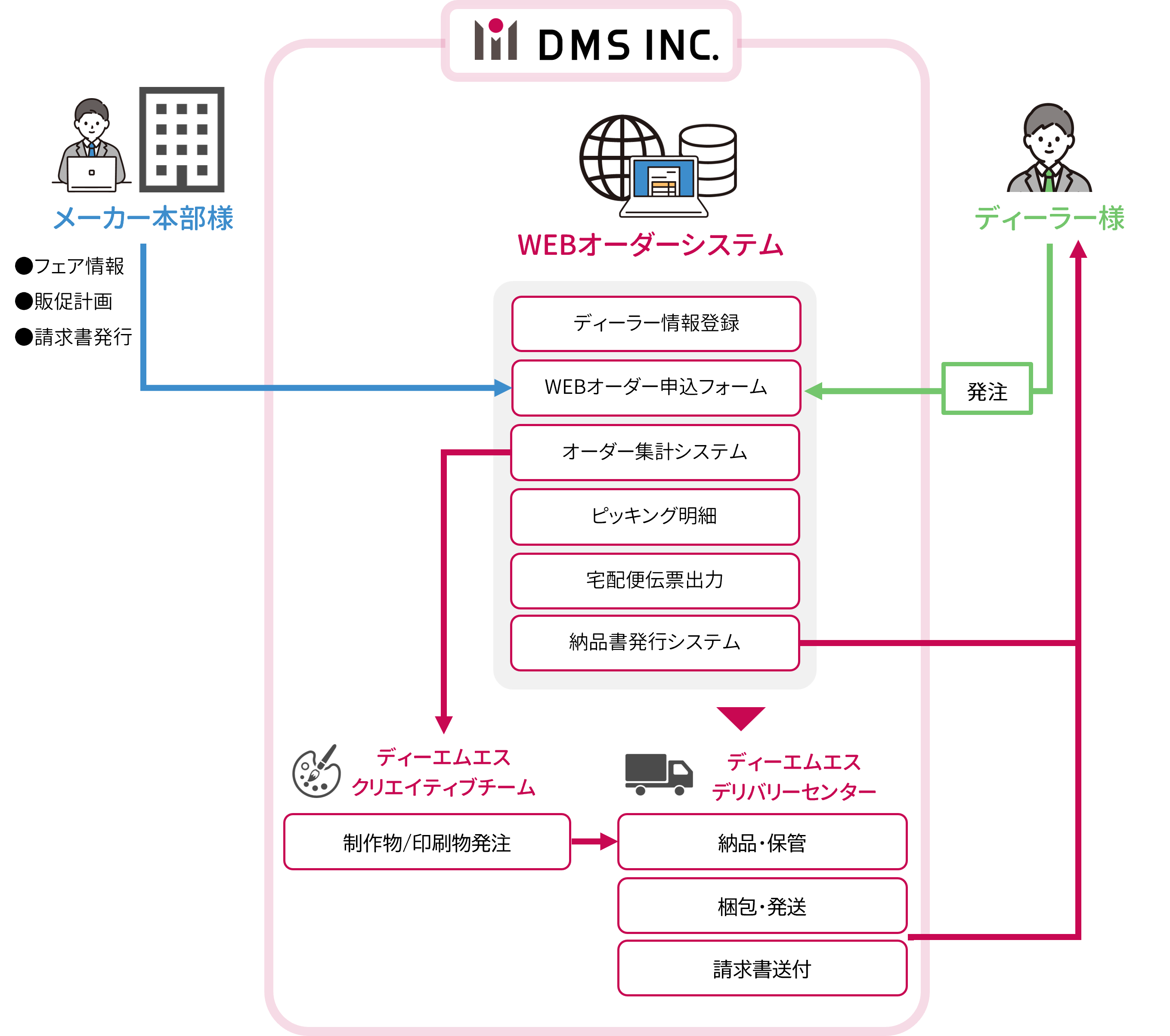 WEBオーダーシステムを活用した「販促ツールデリバリーセンター」の立ち上げにより、注文管理の効率化とミスの削減を同時に実現する体制を構築しました。