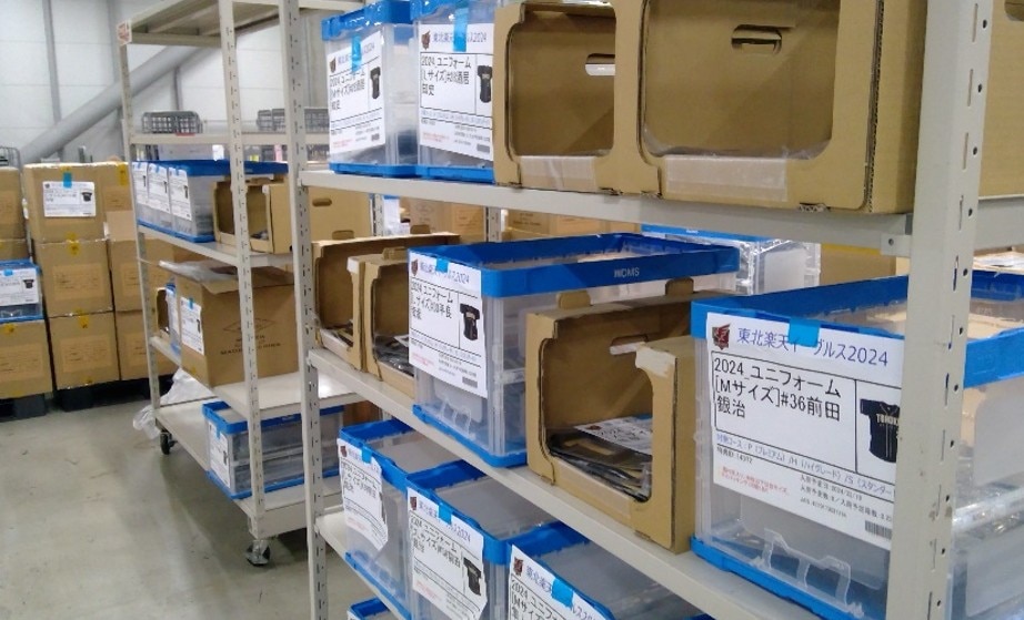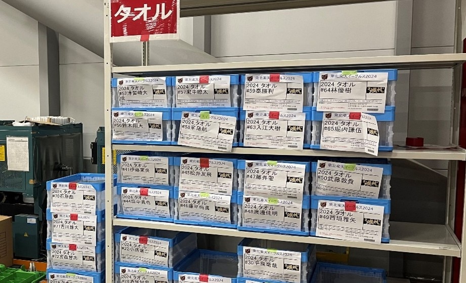 また、一括で在庫管理を行っていただいているので楽天モバイルパーク宮城で使用するアイテムを納品いただいております。