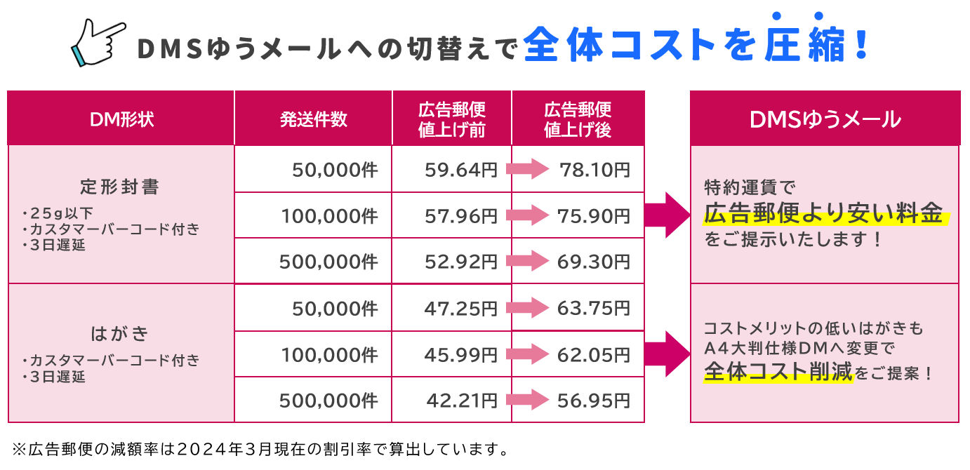 郵便料金の値上げ対策には、「DMS特約ゆうメール」の利用が有効です!