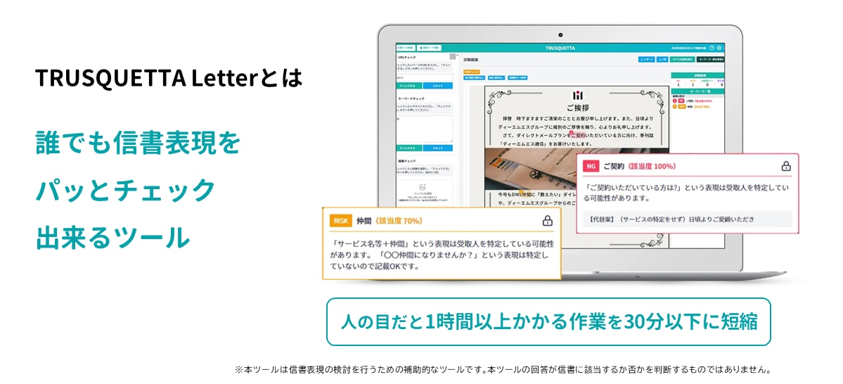 『トラスクエタレター』は、誰でも信書表現をパッとチェックできるツールです。