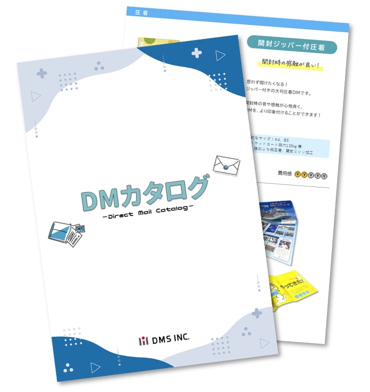 無料配布中! DMの仕様・クリエイティブ検討の際に役立つ! ● DMの仕様に迷っている ● DMの開封率・反応率を上げたい ● いつものDMにひと工夫加えたい