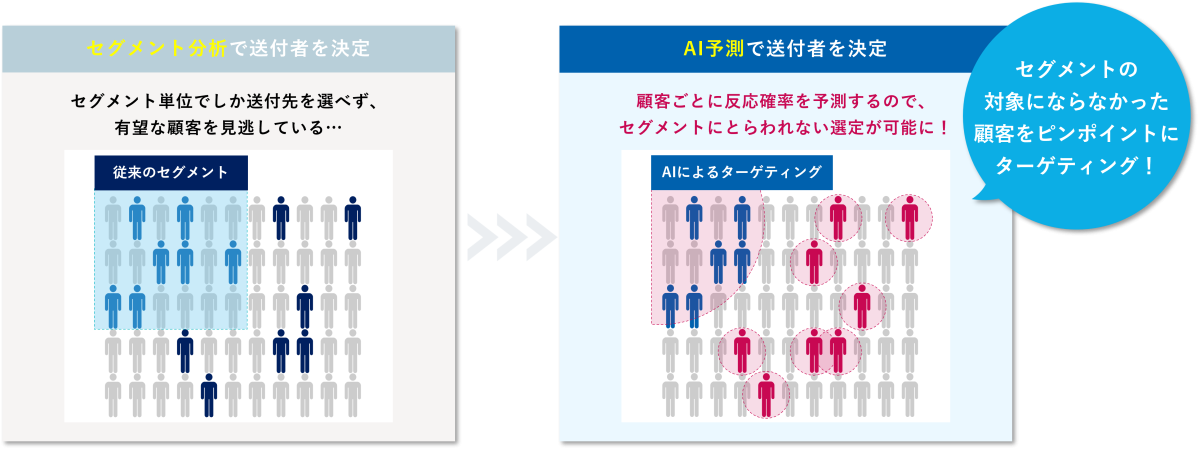 顧客一人ひとりの反応確率で送付者を選定し、
