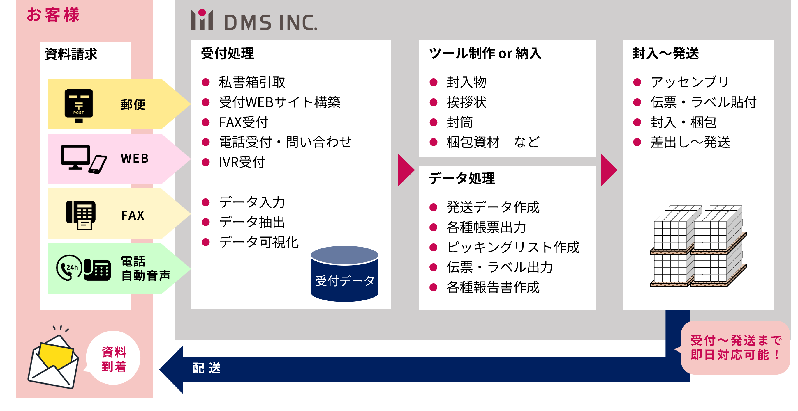 資料請求対応を受付から発送までディーエムエスで一括対応!