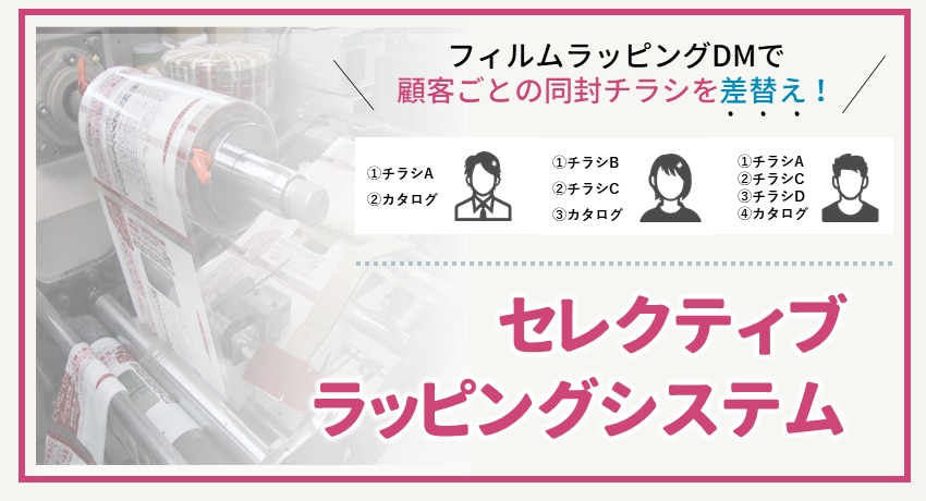 フィルムラッピングDMは、会報誌やカタログなどの冊子をフィルムで包み込み、宛名ラベルの貼付までを一括で行えるDM仕様です。