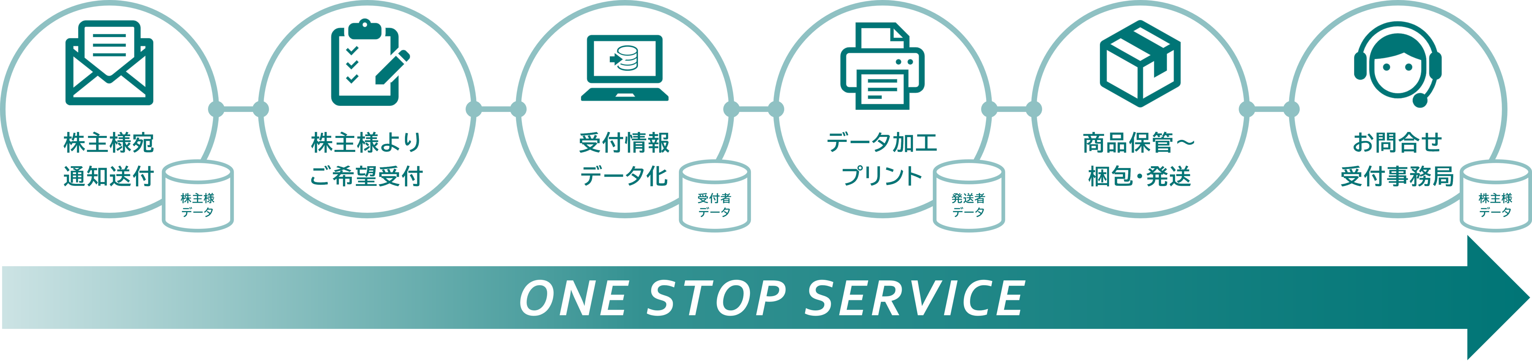 株主様宛の通知送付から受付サイトの構築、お問合せ事務局、優待品の発送までトータルでサポートし、